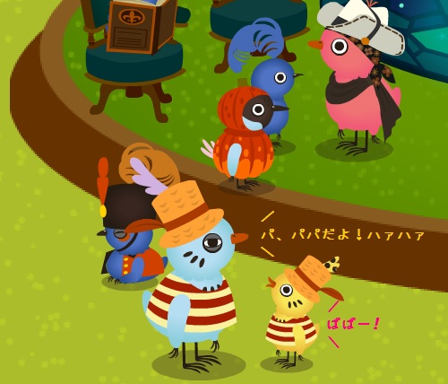 トリネシアにはインしていました。SSも撮ってました。でも切り抜いて張り付けて文章書いて、と言うのを考えると後で後で。なんて思ってしまって気付いたらこんなに時間が経っていたという…申し訳ないです。 さて、この2ヶ月でハウスにも変化がありました。 アスター、ラクテア、ベゴーニャちゃん、ヤキムくんと、立て続けに旅立ちがありました。 我が家を支えてくれていた大事な子達のお別れは今でも寂しいです。ハロウィンイベント中だったのですが少しでも楽しい気分を味わってくれてたかなーと思いながら彼らとお別れしました。 今年のハロウィンはちょっと寂しい気分にもなったけどフレンドさんと見たパレードは楽しかったです。今年も同じものだったけど、誰かと見るのは楽しい。新しい家具も作れたし!また来年もみんなで見にこられたらいいな。 フレンドさんが買っていたオムレツ!アクションするとぷるんぷるんするのがとても楽しくてずーっと遊んでました。オレンジも可愛いしみんなで並んでアクションすると大きさがよく分かるけどちゃんとトリのサイズに合わせてフライパンもサイズ変わるんですね。ちびっこがやるととても可愛い。 最近の家具やら服はちょっとお高いですね。前はもっとお手頃価格で買いやすかったのに。もっと安いの出してくれたら全色買えるのになーと思ってしまいますね。 再販で欲しい物が最近販売されていたのが嬉しいです。 ハロウィンの再販に備えてウェブマネー購入したのに再販がなかったのが残念でした。そしてそれをナッツに変えずに放置していたら現在番号書いてある紙が行方不明になりました。ど、どこいった?? ちょっと探さねば…買ったことすら忘れてる始末です。買ったのは思い出しましたがどこに置いたのか記憶にもありません。 整理整頓苦手な巣箱なのです。そこらへんにぽいぽい置いてしまう癖直さないとな。 2012.09.22 Sat 23:28:35 図書館でお勉強「せんせー!ボクたちはどうしてうまれてきたの?」 そんな難しい質問を投げてくる恐ろしい子どもたち。 先生は苦笑いしてなんとか誤魔化します。 子供のサイズで本の大きさも変わるので可愛いですね。なんちゃって学校ごっこして遊んでました。 左上ではエノテラがぼんやりしております。お勉強は嫌いかい? 右のかぼちゃ、ウルトラずんだたろうと言われるこの子、この衣装とこの表情を見るとホルホルを思い出します。 「本のかほり…うっとり」 みたいな感じ? フレンドさんちのお婿さんがエノテラと似ていたので同じ服を着せてみたらなんだか親子の様です。 レイモンさん!よだれふいて!! アイスを地面に落としてしょんぼりしているりっすんを慰めるトキくん。 「そんなにしょんぼりしてると無事な方も溶けちゃうよ?」 青シャケことティントネーロはそんなこと気にもせずに飛び跳ねることに一生懸命。 ちび達も毎日大きくなってます。もっとヒナ増えたら嬉しいな。兄弟欲しいもの。 我が家では300日前に老化するトリが出てきてショックを受けております。 ベゴーニャちゃん294日、アスター291日と想像より早く老化してます。ラクテアも老化してしまったのですが彼は306日までぴっちぴちでした。何でお嫁さんより頑張っちゃってるのよ。一緒におじーちゃんになってあげなさいよ!と思ってしまいました。 最近老化早まってるんですかね?老齢になるほど産卵しにくい、トリが増えにくいのだから老化日数は300日「以降」にしてほしいです。要望出してもスルーされてるのでもう望みは薄そうですね。 産卵せずに老化しないだけマシだと思うしかないのでしょうか…また要望出してみよう。 9月なのに今回の再販は夏物プール系でしたね。え?今頃??とツッコミ入れてました。また色々再販してほしいな。 |